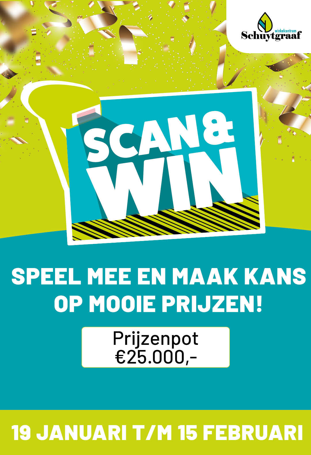 Shop, scan en win! Vanaf maandag 19 januari maak je in Winkelcentrum Schuytgraaf 4 weken lang kans op fantastische prijzen met de Scan & Win-actie.